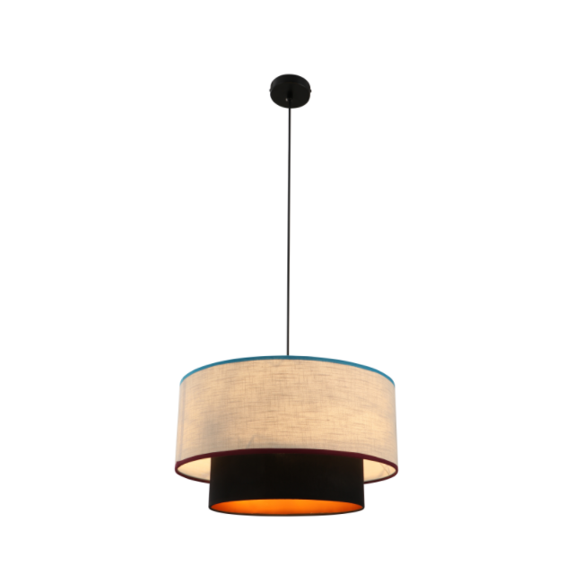 De 3-licht drum kroonluchter van Strong Lighting heeft twee gelaagde stoftinten voor gebalanceerde, verblindevrije verlichting. De bovenste laag gebruikt een diffuser van neutraal-getinte stof om de lichtuitgang te verzachten, terwijl de onderste laag een roségouden reflector bevat om de helderheid te versterken en warme, luxueuze accenten toe te voegen.