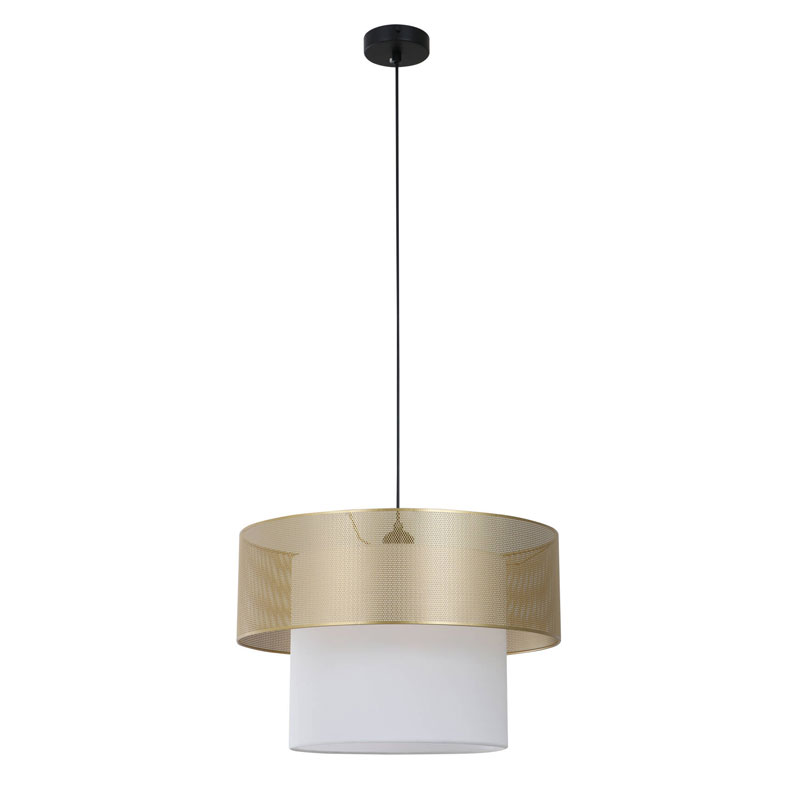 Twee lagen stoffen hanglamp voor de keuken, onlangs geïntroduceerd door Zhongshan Strong Lighting, een 10 jaar ervaren exportleverancier voor binnenverlichtingsproducten uit China. De twee lagen stoffen hanglamp voor de keuken heeft een verstelbare snoerlengte. De buitenste kap is van geperforeerd goudkleurig metaal, de binnenste kap is van een witte textielkap. De lichtopbrengst is zacht. Sterke verlichting Twee lagen stoffen hanglamp voor keuken is geschikt om op te hangen in de eetkamer, woonkamer of slaapkamer. Deze familie heeft ook een kleiner formaat in afmeting 350MM.